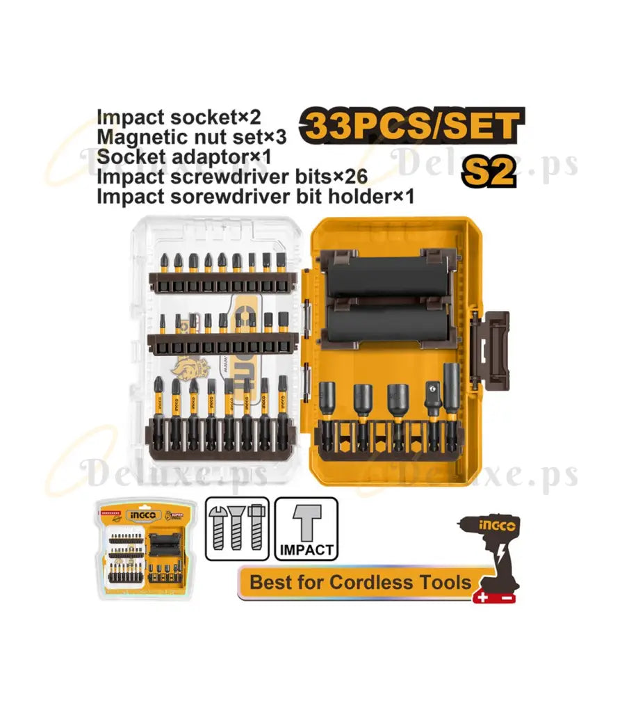 - مجموعة رؤوس ومفاتيح مفك براغي صدمية مكونة من 33 قطعة